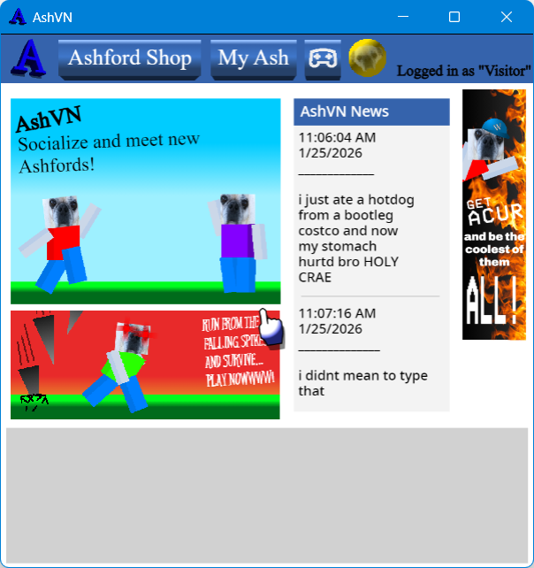 AshVN is a game that is kid-friendly and 2D. You can play games, talk with people, and much more.